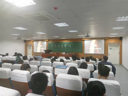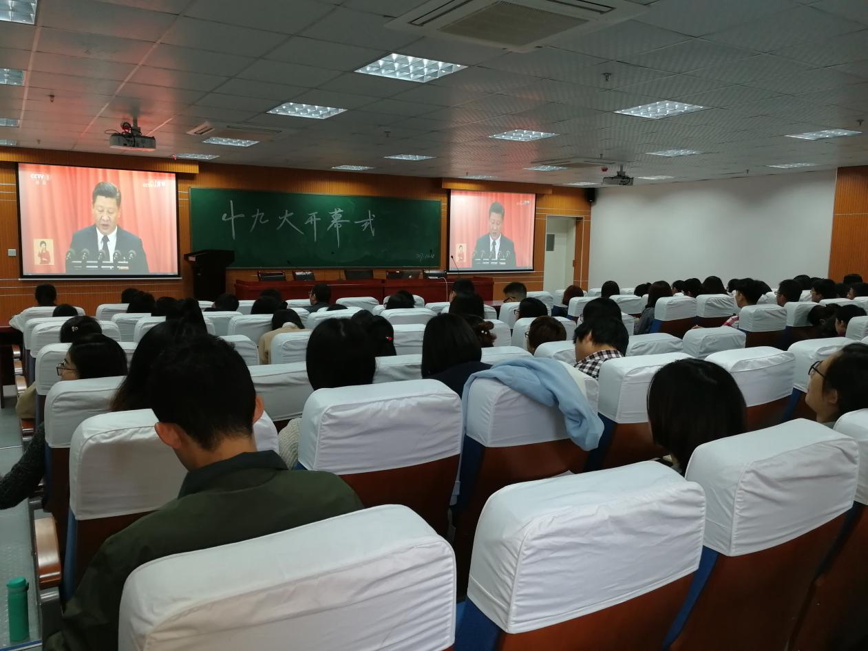 2017年10月18日,湖南大学数学与计量经济学院组织师生在数学院207报告厅集中观看党的十九大开幕盛况,参会人员包括数学院全体师生党员、预备党员以及积极分子。