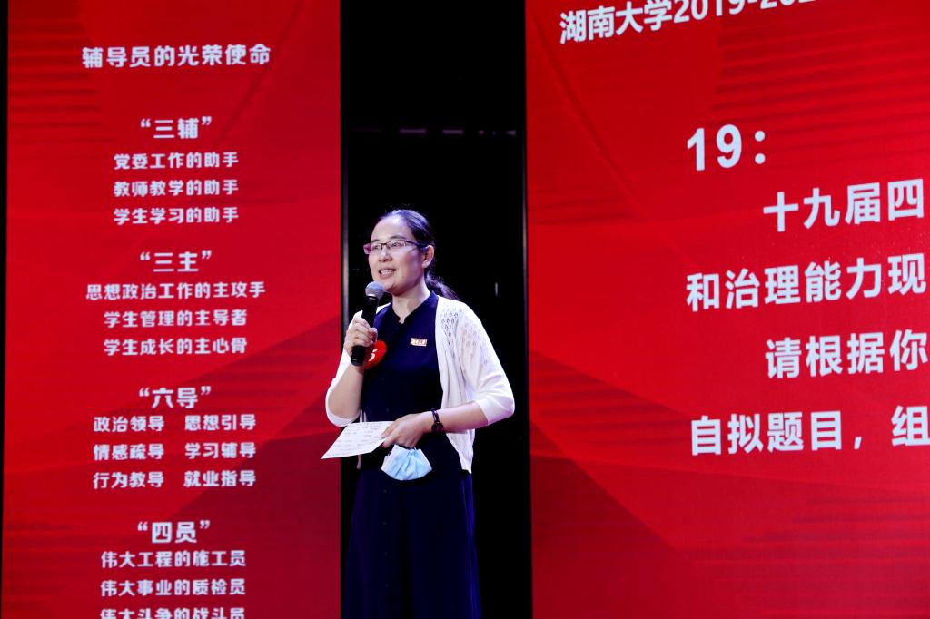 辅导员的理论水平、专业素养和宣讲能力,本次理论宣讲既是该大赛的最后一个比赛环节。现场还为中国语言文学学院等10个单位颁发了“湖南大学2019-2020学年度辅导员素质能力大赛”优秀组织奖。
